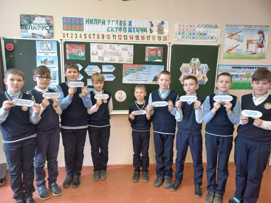 Во время урока учащиеся отправились в увлекательное путешествие, чтобы узнать, какая она – белорусская женщина, почему занимает особое место в истории и жизни страны. Ребята обсудили значение Года белорусской женщины для общества, раскрыли многогранный образ женщины как хранительницы языка, культурных традиций и семейных ценностей. Размышляли они и о том, какие качества помогают добиваться успеха в спорте, искусстве, науке и других сферах жизни.