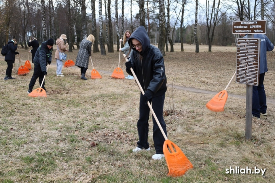 В преддверии Дня памяти Хатынской трагедии молодёжь района провела уборку на Аллее памяти сожжённых деревень, расположенной на улице Каминского.