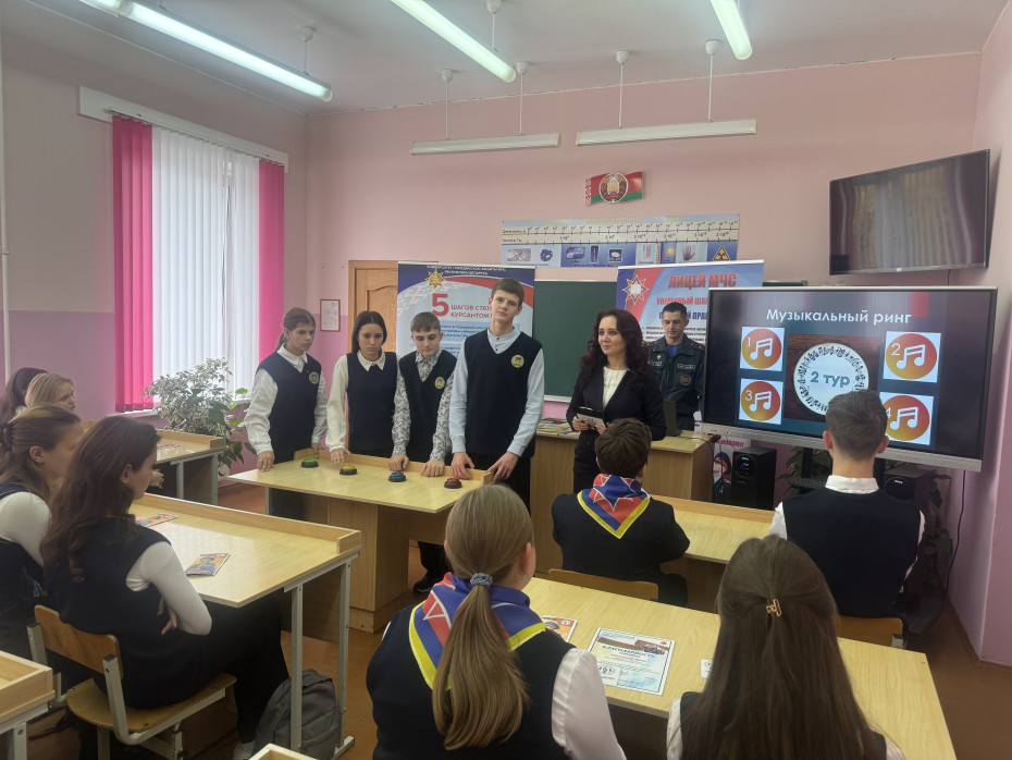 Учащиеся ГУО «Средняя школа №1 г. Сморгони» попробовали свои силы в музыкальном ринге «Юный спасатель». Он состоял из 3 туров, в ходе которых участникам нужно было по звуку определить, что скрывается под каждой из 10 композиций. Борьба в турах была не шуточной.
