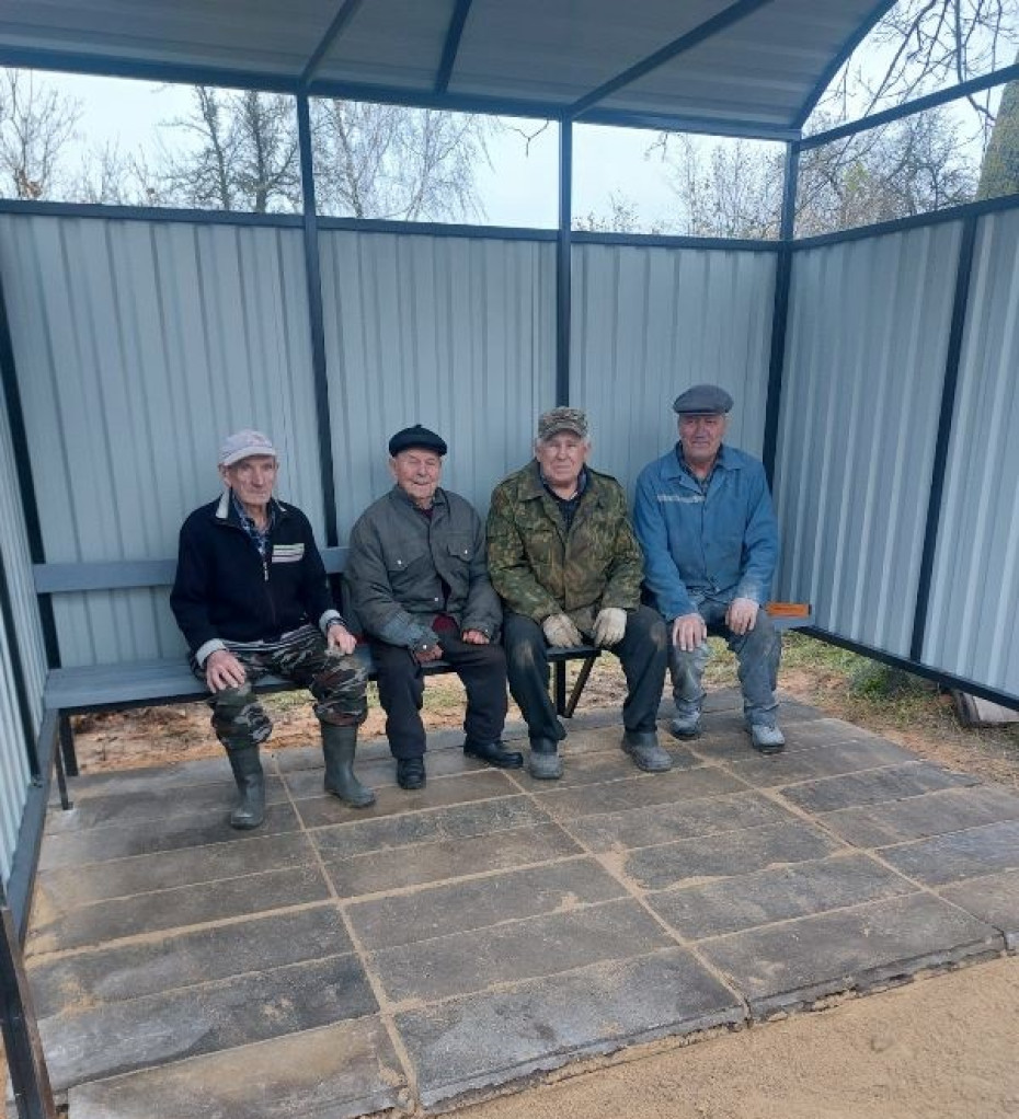 Установкой павильона и благоустройством территории занимались местные жители: Николай Скаскевич, Александр Козел, Юрий Раковский, Евгений Рубан. Теперь сельчанам есть где укрыться от неблагоприятных погодных условий во время ожидания автомагазина.