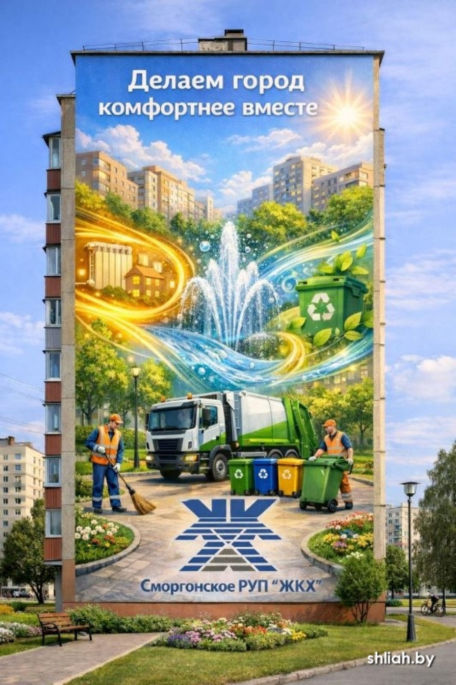 Рисунок с тематикой ЖКХ выполняет профессиональный граффити-художник Сергей Сорокин. Родом парень из Барановичей, сейчас живет в Минске, но работает по всей Беларуси. Для Сморгони это уже не первый объект художника. В прошлом году он рисовал лесничего с девочкой на торце дома на улице Якуба Коласа.