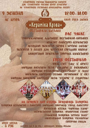 Старажытная зямля Крэва, славутая не толькі сваёй багатай гісторыяй, але і ўнікальнымі залежамі «чырвонай» гліны, зноў збярэ аматараў керамічнага мастацтва з усёй Беларусі на традыцыйным фестывалі-кірмашы «Кераміка Крэва».