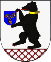 "Герб города Сморгони представляет собой изображение на серебряном поле испанского щита на красной решетке стоящего на задних лапах черного медведя, в передних лапах которого герб Радзивиллов - на голубом поле размещены три черных охотничьих рожка, соединенные в центре мундштуками".