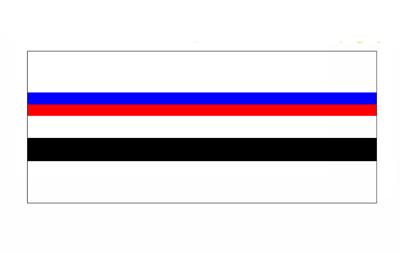 "Флаг города Сморгони представляет собой прямоугольное полотнище с соотношением сторон 1:2. По центру находится белая полоса, соответствующая 1/7 ширины полотнища, сопровождаемая сверху двумя спаренными полосами голубого и красного цвета, составляющими по 1/14 ширины, снизу - полосой черного цвета, составляющей 1/7 ширины полотнища. По краям флага размещены белые полосы, соответствующие 2/7 ширины полотнища".