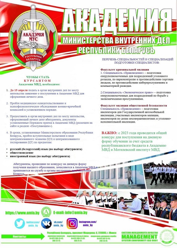 Более подробная информация размещена на сайтах www.academy.by, www.institutemvd.by