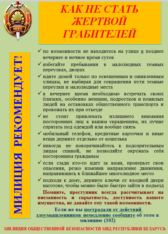 Памятка как не стать жертвой преступных посягательств в общественных местах