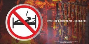 Преимущественно граждане гибнут в огне из-за своей или чужой привычки курить в постели, зачастую в состоянии алкогольного опьянения. Если вы не можете отказаться от этого пагубного пристрастия и курите дома, то делайте это безопасно - ни в коем случае не бросайте непогашенные сигареты на пол и не курите в постели! Окурки же складывайте в пепельницу или несгораемую емкость, лучше всего наполненную водой.