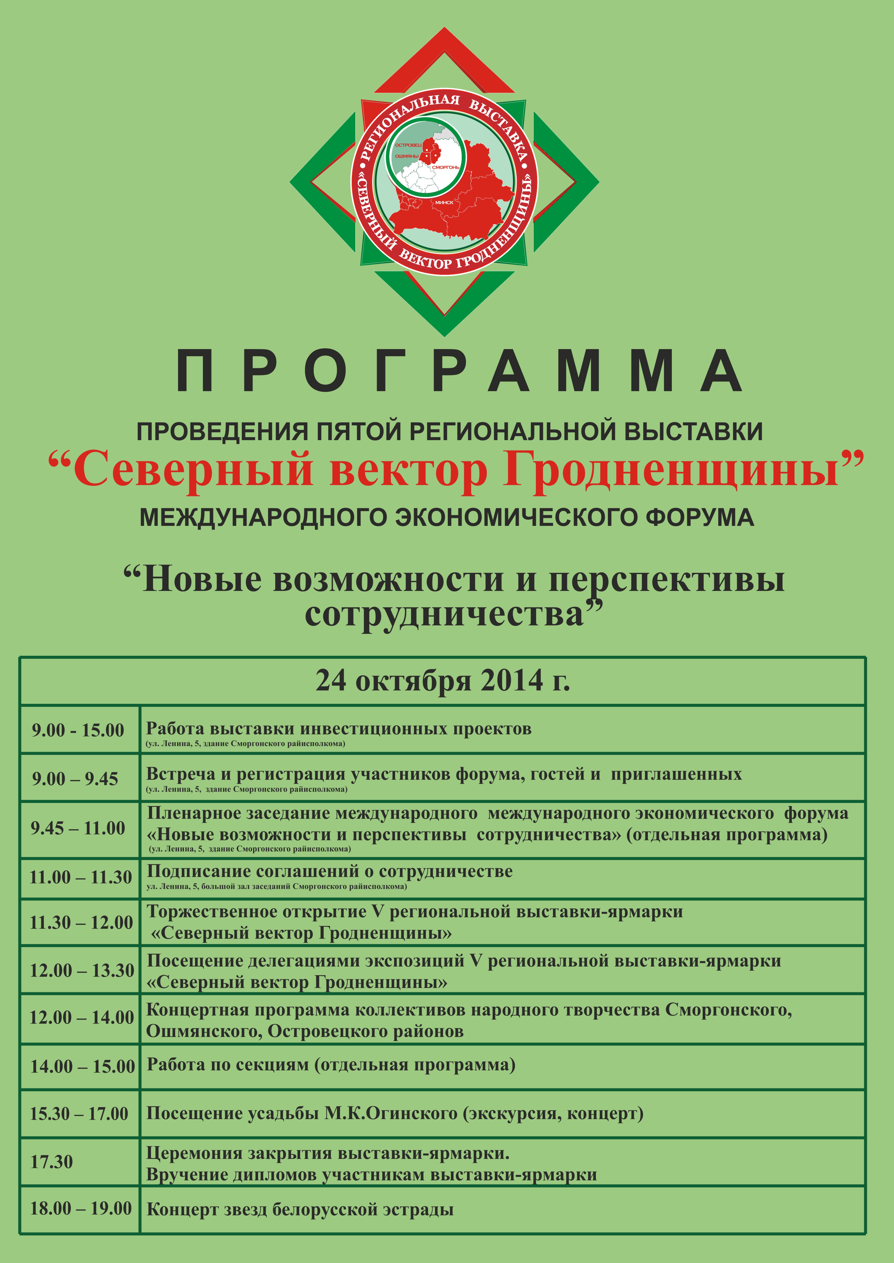 24 октября 2014 года состоится V региональная выставка-ярмарка «Северный вектор Гродненщины 2014» и Международный экономический форум «Новые возможности и перспективы сотрудничества».
