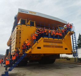 Весенние каникулы ребята из пятой школы начали с посещения БЕЛАЗ. Сначала ребята побывали в музее. В ходе экскурсии они узнали много нового и удивительного о заводе. Оказывается, что таких уникальных производств только три в мире! Причем, в Европе больше нет ни одного! На предприятии создаются самые знаменитые машины, которые стали брендом Беларуси и завоевали множество мировых премий, а также являются дважды рекордсменами Книги рекордов Гиннеса. Самый большой карьерный самосвал имеет грузоподъёмность 450 тонн. Но самые сильные эмоции у ребят вызвало посещение полигона и демонстрационной площадки, где обкатывают автомобильные гиганты. Школьники поднялись на площадку рядом с водительской кабиной самого большого самосвала в мире и, конечно, сфотографировались около четырёхметрового колеса.
