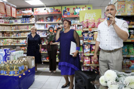 Заместитель председателя райисполкома Татьяна Щеберяко вместе с начальником начальник отдела торговли, услуг и рекламной деятельности Валентиной Голяк и председателем районной организации ветеранов Ириной Голдыцкой поздравили работников торговли прямо на рабочих местах.