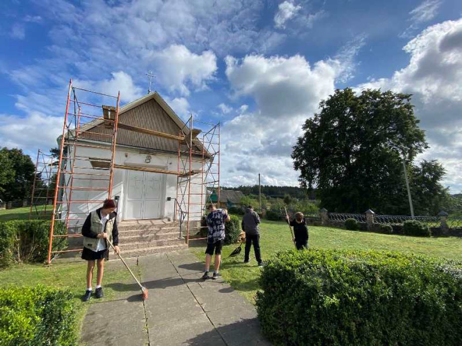 Продолжая трудовой марафон «А что ты сделал для Беларуси?», в рамках акции «Восстановление святынь Беларуси» и проекта по духовно-нравственному воспитанию «Уважая мудрость», разработанного ГУО «Гродненский областной институт развития образования», представители ОО БРСМ СШ №3 и их младшие товарищи, члены ОО БРПО, посетили церковь преподобной Евфросинии Полоцкой в агрогородке Вишнево Сморгонского района, где оказали помощь в наружном ремонте храма и уборке территории.