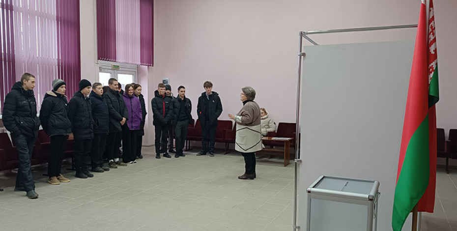 Также учащиеся познакомились с информацией о кандидатах в президенты, увидели, как обустроены кабинки и ящики для голосования, а также узнали, как обеспечивается охрана избирательного участка.