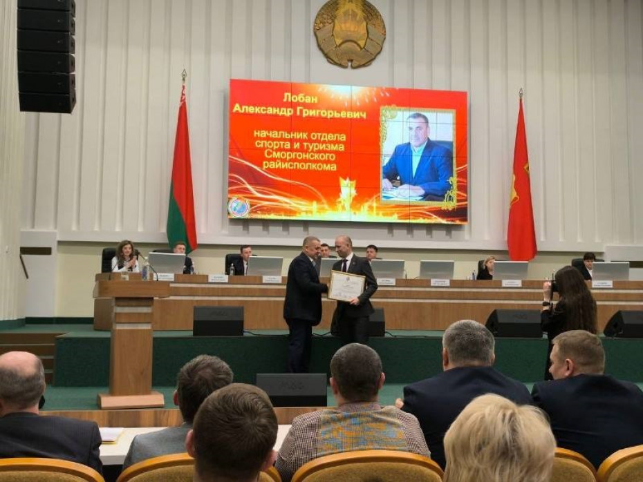 Заместитель Министра спорта и туризма Олег Андрейчик вручил Почетные грамоты Министерства спорта и туризма Республики Беларусь начальнику отдела спорта и туризма Сморгонского райисполкома Александру Лобану и директору районной специализированной детско-юношеской школы олимпийского резерва профсоюзов «Триумф» Елене Барташевич за их добросовестный труд и высокий профессионализм в развитии физкультуры и спорта.