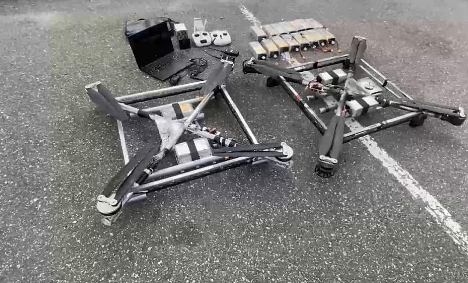 При осмотре мест проживания задержанных выявлена мастерская для кустарного изготовления БПЛА, в которой находился целый «арсенал»: пять радиостанций, ноутбуки, различные микросхемы, гарнитуры, антенны, GPS-трекеры, аккумуляторы к беспилотникам и зарядные устройства, а также предмет, схожий с пневматическим пистолетом.