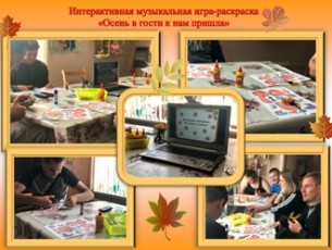 «Осень в гости к нам пришла» – так назывался наш осенний праздник, в котором приняли активное участие посетители отделения. В начале мероприятия была показана презентация, в ходе которой ребятам предстояло поиграть в музыкальную игру-раскраску. Затем воспитанники смогли продемонстрировать свои умения и навыки в изготовлении осенней аппликации.