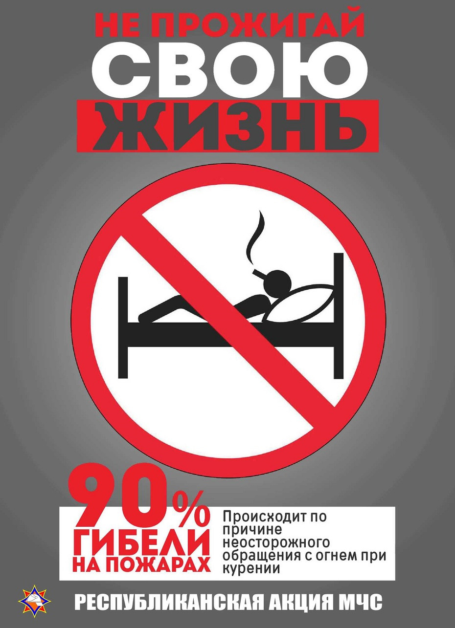 Уважаемые граждане! Чтобы не оказаться в списках погорельцев, ни в коем случае не разбрасывайте дома непотушенные окурки. Складывайте их в пепельницу или несгораемую емкость, лучше всего наполненную водой. Убедитесь в том, что сигарета не только не горит, но и не тлеет. Помните, что курение в состоянии алкогольного опьянения часто становится причиной возникновения пожара!