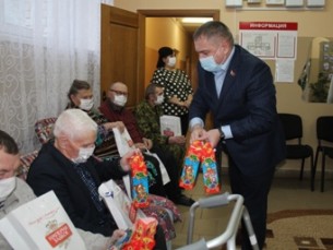 В канун Нового года заместитель председателя райисполкома Дмитрий Станкевич, председатель районного Совета депутатов Сергей Куденьчук, директор Сморгонского комбината хлебопродуктов Максим Кузьменок, а также представители филиала "Жодишки" приехали с множеством подарков и поздравлениями в филиал УТЦСОН "Тёплый дом" в агрогородке Лылойти.
