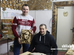 В мастерской Женя проводит занятия по обработке древесины и выжиганию.