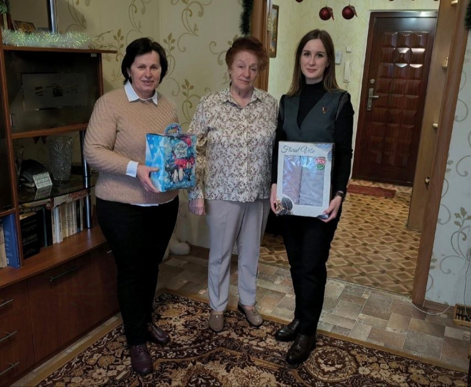 В рамках акции «От всей души» первый секретарь райкома БРСМ Екатерина Сорока и заместитель по идеологической работе КУП «ЖРЭС Сморгонского района» Елена Николайчик поздравили с новогодними праздниками инвалида детства, члена семьи, погибшего в годы Великой Отечественной войны, Лилию Дубинову. Гости пожелали Лилии Викторовне крепкого здоровья и мирного неба над головой, поинтересовались житейскими проблемами.
