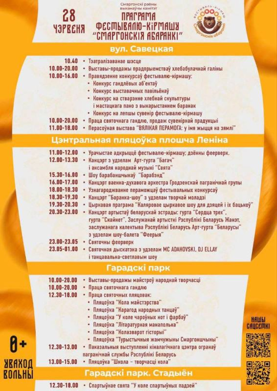 ПРАГРАМА ФЕСТЫВАЛЮ-КІРМАШУ "СМАРГОНСКІЯ АБАРАНКІ"