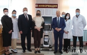 Сегодня в Сморгонской ЦРБ в торжественной обстановке заместитель директора ИООО «Кроноспан» по коммерческим вопросам Людмила Сырникова вручила документы на новый УЗИ-аппарат главному врачу Виталию Круповичу.