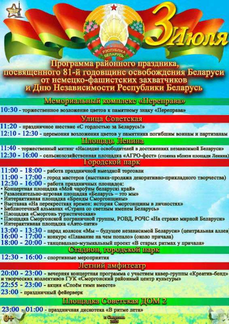 Программа районного праздника, посвященного 81-й годовщине освобождения Беларуси от немецко-фашистских захватчиков и Дню Независимости Республики Беларусь