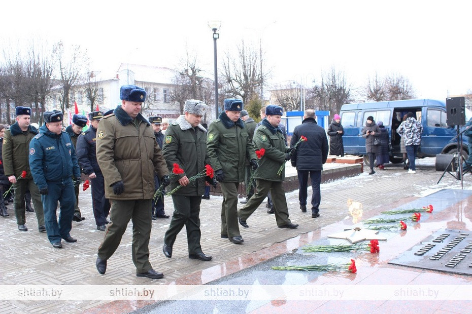 Митинг и возложение цветов к памятнику погибшим воинам и партизанам прошли в Сморгони накануне Дня защитников Отечества и Вооруженных Сил Республики Беларусь.