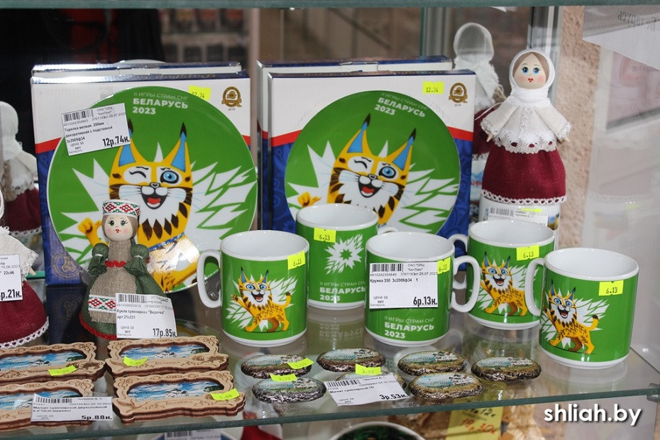 В городе можно приобрести сувениры с символикой соревнований ІІ Игр стран СНГ, которые с 4 по 14 августа пройдут в 11 населенных пунктах Беларуси.