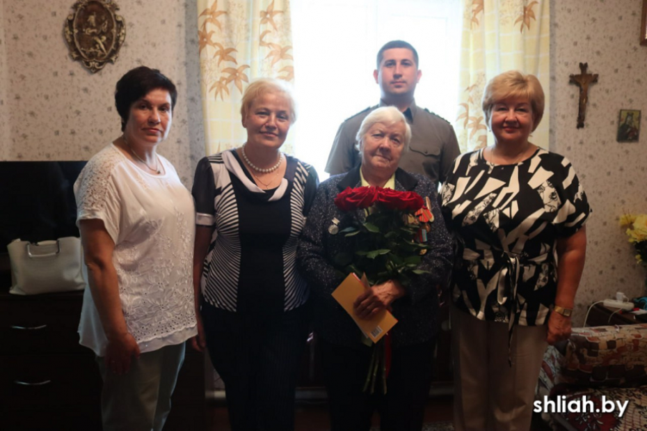 Татьяна Щеберяко передала Татьяне Яковлевне поздравительные открытки от Президента Республики Беларусь, Сморгонского райисполкома и районного Совета депутатов. Также Татьяна Николаевна пожелала бывшей узнице концлагеря крепкого здоровья, успехов и сил.