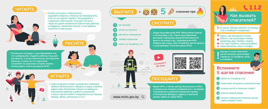 Научите ребенка правилам безопасности с раннего возраста. Загляните в раздел «Мультимедиа по ОБЖ» на сайте 112.by и найдите занятие по душе. Послушайте сказки, поиграйте в игры, разукрасьте раскраски или почитайте книжки, посмотрите вместе с детьми мультфильмы МЧС. Вместе с главными героями Вы станете участниками увлекательных приключений и повторите правила безопасного поведения в различных ситуациях.