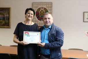 В кабинете директора собрались работники СМТ-41. Слова благодарности звучали из уст директора Сергея Радамана, главного инженера Евгения Гурского и других работников предприятия. Почетную грамоту районного исполнительного комитета Алле Петровне вручил заместитель председателя райисполкома Дмитрий Станкевич.