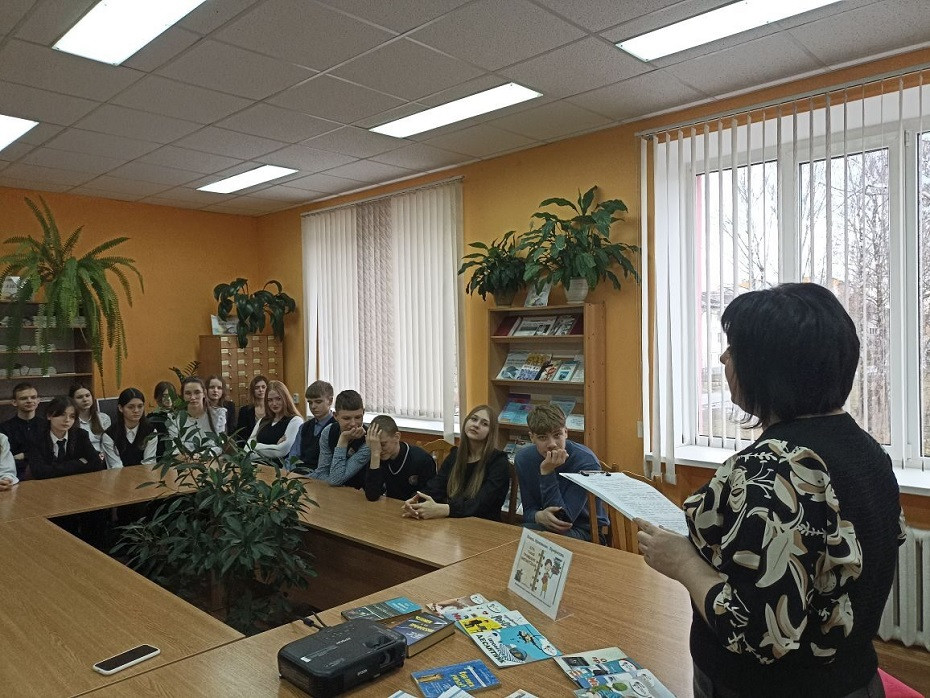 Ведущая познакомила будущих выпускников с профессией библиотекаря, с вакансиями, которые имеются, рассказала о том, где можно получить соответствующее образование, а также об условиях труда и социальных гарантиях, которые предоставляются работникам.