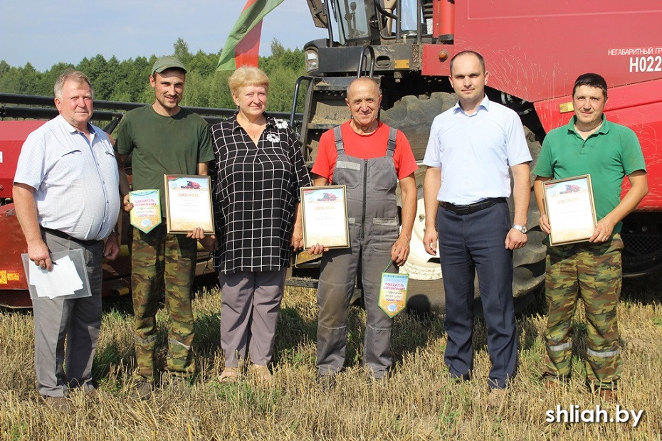 В этом году комбайнер и его помощник на комбайне «Лексион» третьими достигли тысячного рубежа по намолоту зерна. Их тоже поздравили с высоким достижением в работе на поле возле агрогородка Лылойти. Вручая награды Александру Яровскому и Виктору Королеву, Сергей Медзвецкас поблагодарил их за высокую отдачу в период уборочной страды.