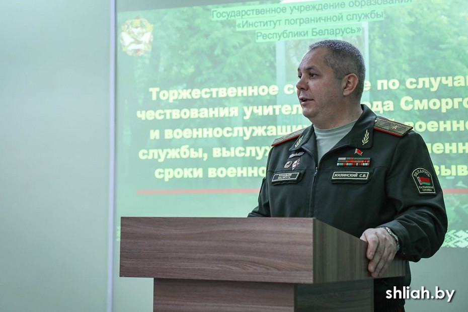 В четверг, 17 октября, в учебном центре прошло торжественное собрание по этому поводу. На мероприятии присутствовал начальник Института пограничной службы Сергей Жилинский, который поздравил «срочников» с увольнением в запас, а также вручил грамоты и благодарности сморгонским педагогам.