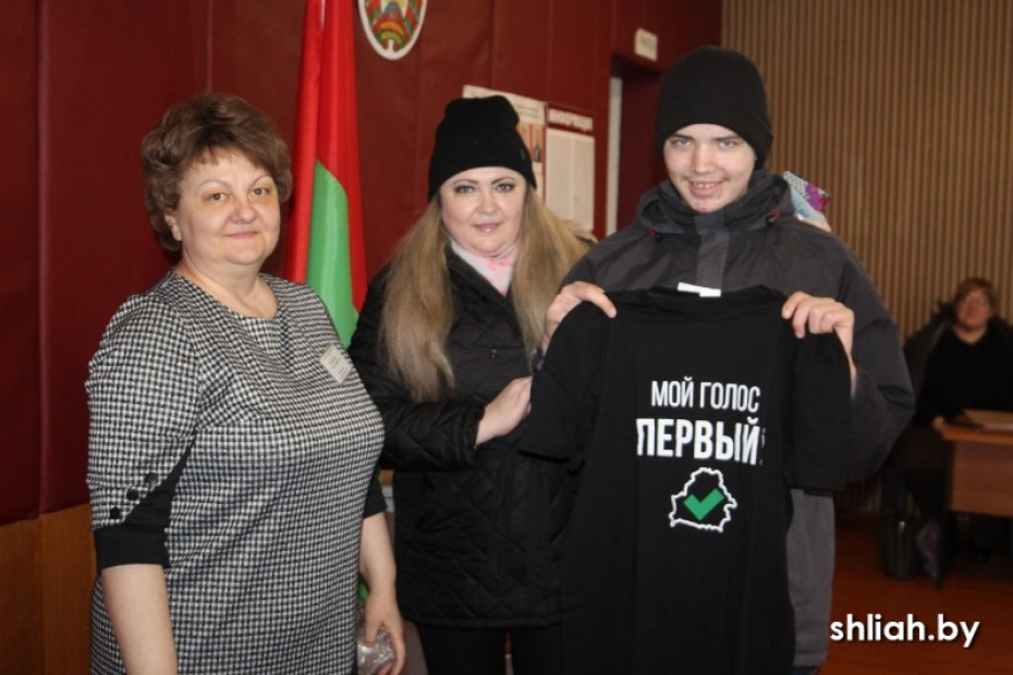 Отдать свой голос за кандидата в Президенты Республики Беларусь Даниил пришел вместе с мамой. Он был приятно удивлён, получив памятные подарки.