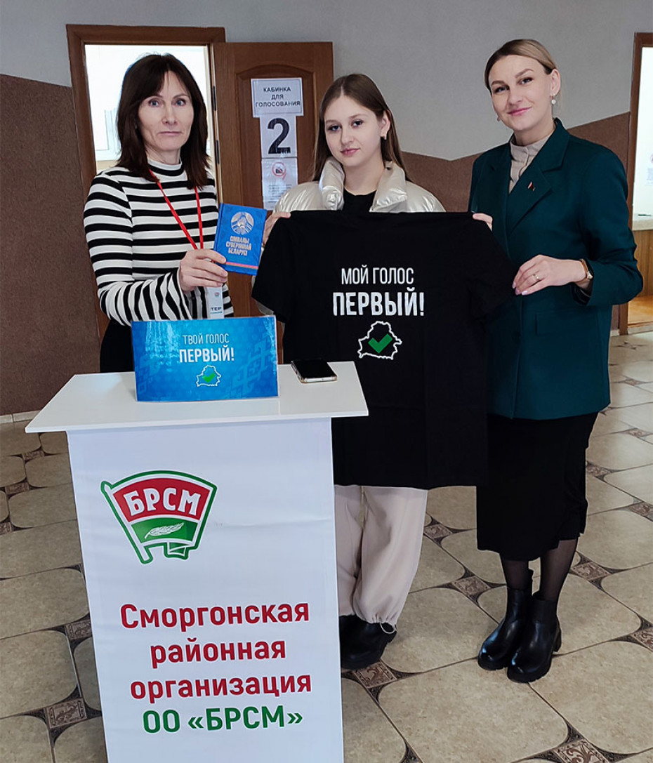 На память о важном мероприятии представители избирательной комиссии и волонтеры вручили молодым избирателям книги «Сімвалы суверэннай Беларусі» и футболки.