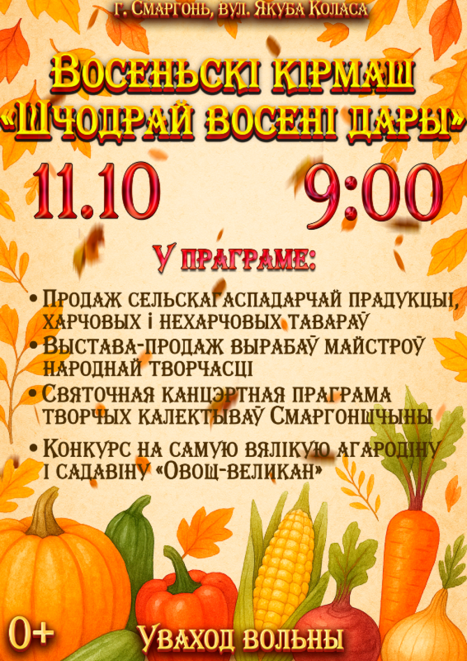Запрашаем на восеньскі кірмаш "Шчодрай восені дары"